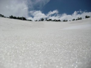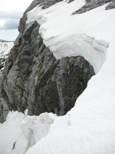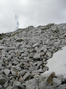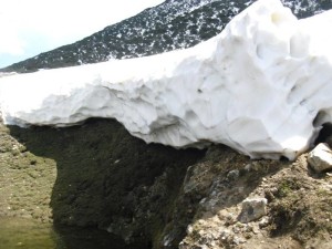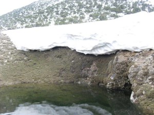 И стигнав до бачилата, поточно подножјето на сипарот каде со голема брзина почнав да ги скокам огромните камења, се до повторното излегување на патот. Немав многу време за уживање. Тука беше и првата посериозна опасност. Патот беше блокиран со снег, па морав да го заобиколам од горе. Без дерези доколку се лизнам можам да отидам повторно право во Бегово поле, што сега не беше пожелна варијанта. Сепак мојата намера беше да одам нагоре! Го заобиколив од горе и излегов на сртот кој води непосредно до врвот пред Солунска. Повторно пропаѓање во мокар и тежок снег. Тешко искачување. Морав да одам што по десно, затоа што од лево беше терасата со надвиснатите снежни остатоци кој беа поголеми и од еден метар. Она шаренило кое се гледаше од дистанца, од близу и не беше баш така шарено. Снегот беше насекаде. По надминувањето на опасните превои и излегувањето на врвот остануваше уште сртот до Солунска. Тука веќе беше виден успехот, а и возбудата.